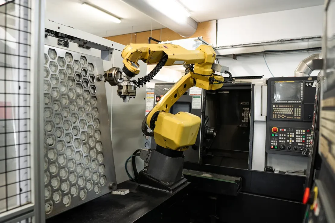 CNC soustruh DOOSAN typ LYNX 2100 s řídícím systémem FANUC s možností obsluhy stroje robotickou rukou se zakladačem polotovarů